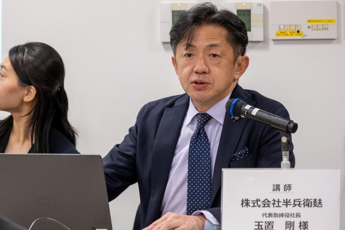 今回は、現地とインターネット配信のハイブリッド形式で行われた第1部のセミナーについて紹介します。セミナーにご登壇いただいたのは、株式会社半兵衛麸の代表取締役社長、玉置剛氏です。